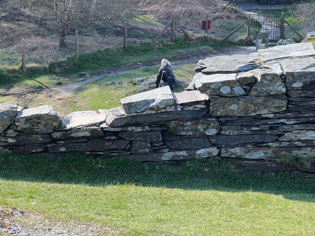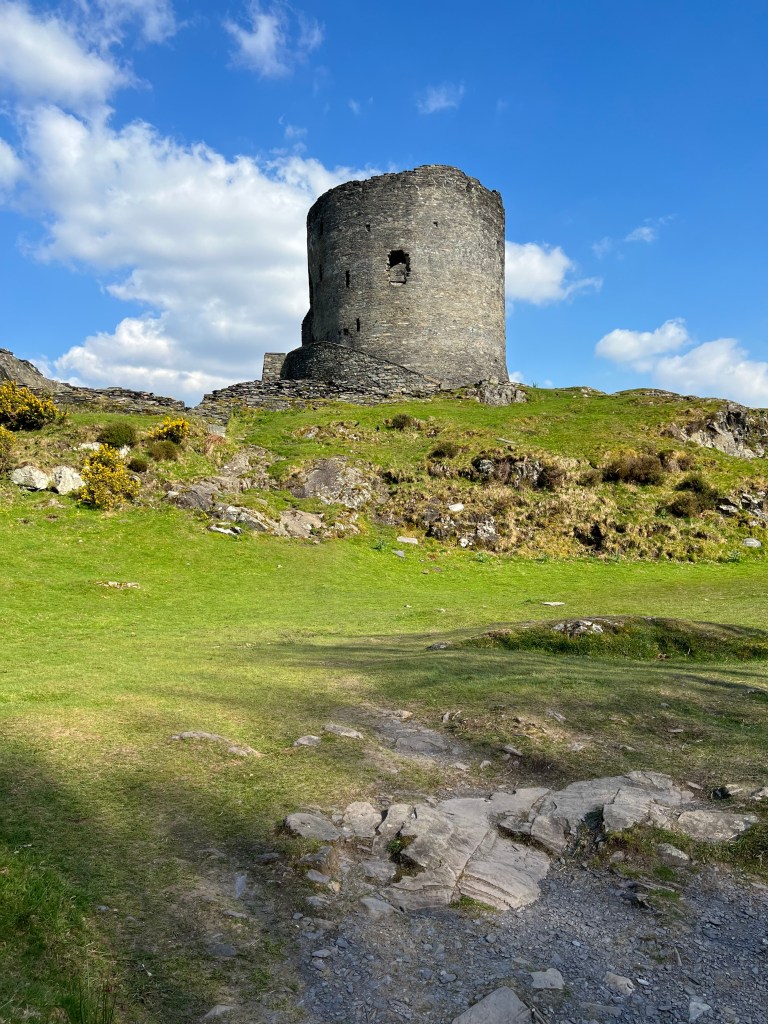 After 10 minutes or so, the train backed its way down the mountain and pulled back into the station. The passengers disembarked, and Robin and I grabbed some ice cream from a stand near the station. From there we drive a quarter of a mile to nearby Castell Dolbadarn. It is the tower of the ruins of a Welsh castle. While not as mighty in stature as Castyll Conwy, Beaumaris, Harlech or Caernarfon, it was still pretty impressive that that much castle was left after such a long time. Robin stayed near the gate at the base of the hill. Her knees were hurting and she didn’t make it to the castle.