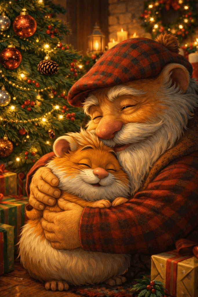 Pa wrapped his arms around Haimish in a big hug. “Och, laddie! Ya make mae heart yoong rememberin’ wut was! Nollaig Chridheil dhut!” (No-likh chree-yell ghoot! Merry Christmas!)