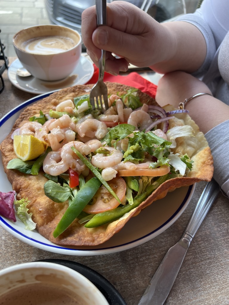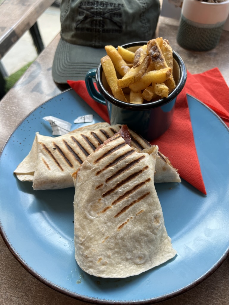 Friday, April 21, Robin and I were heading back to Manchester. When we originally scheduled our trip, we had rooms in Hotel Football for the Manchester United v Chelsea match. When that got rescheduled, we were able to get a refund for the tickets, but we could not cancel the hotel room. So we decided to go ahead and use it. The plan was to go there on Friday, spend Saturday doing something fun, then return for services at St. Mary’s and All Saints on Sunday. But first, some lunch in Conwy. Robin had a prawn taco salad and I had a very delicious chicken, bacon and ranch panini. Priorities.