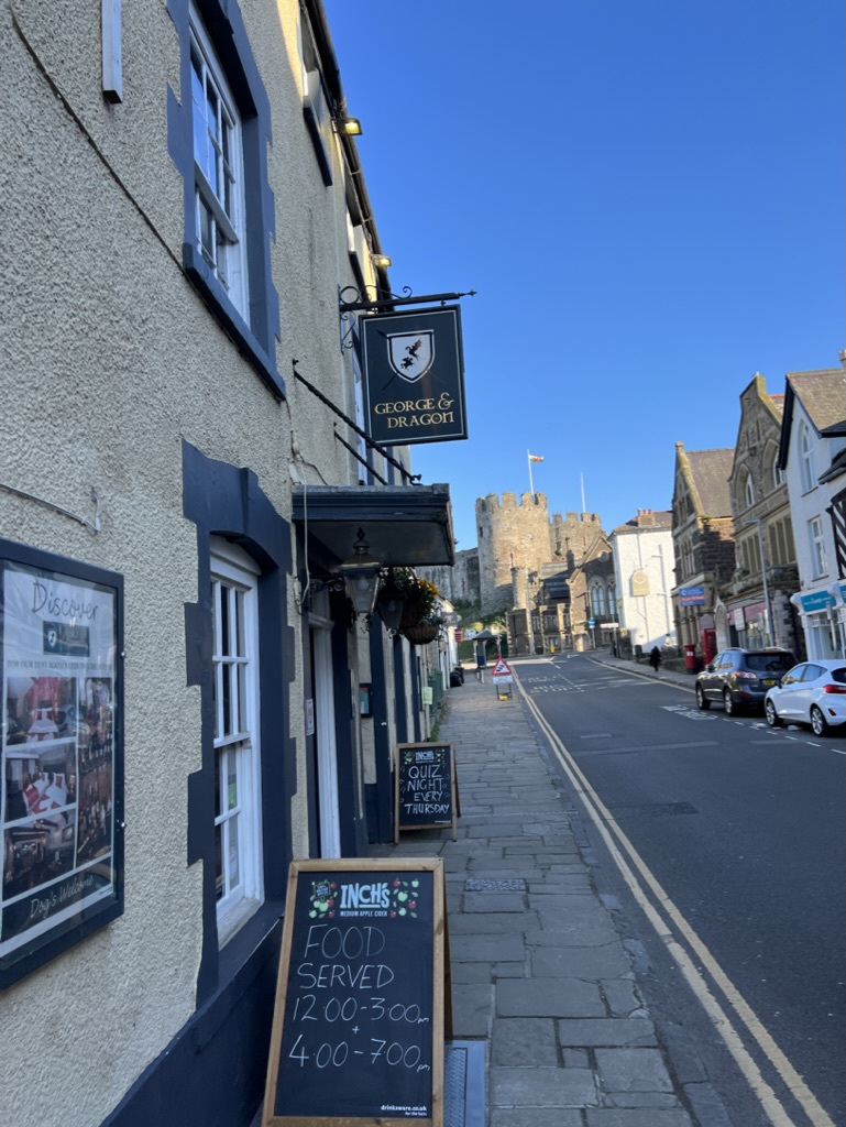 So after a busy day at Betws-y-Coed and Harlech Castle, Robin and I finished the day at two pubs in Conwy, the George & Dragon, and Ye Olde Mail Couch. There’s a reason we did two pubs in one night. Robin and I had gone in search of a pub that was televising the Manchester United match with Sevilla. Of course, we had seen the first leg in person, and wanted to watch the second leg in Sevilla, Spain on television. We had heard previously that the two pubs were known for showing Man U matches. We had been to the George & Dragon previously, so we went there.
