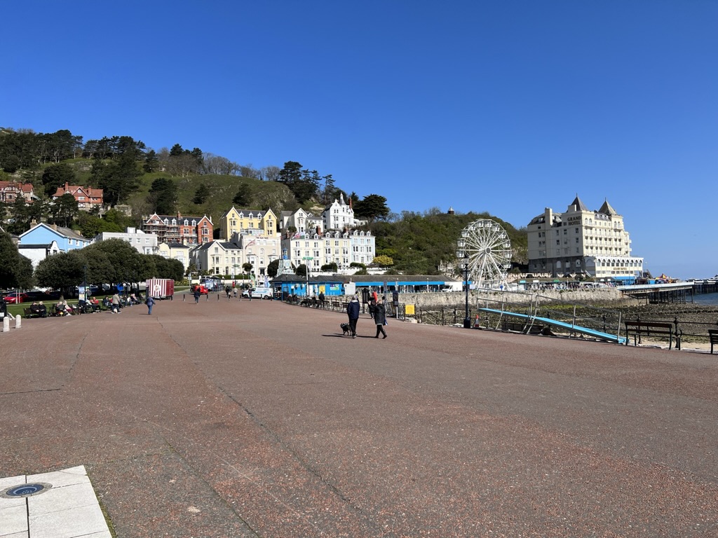 We got up fairly early and drove east over the bridge from Conwy to Llandudno Crossing. From there it was just a hop, skip and a jump to Llandudno. We drove to the main square and found a parking place close to the beach. The businesses there were just starting to open, and we found ourselves a nearby cafe to get some breakfast, and the requisite coffee.