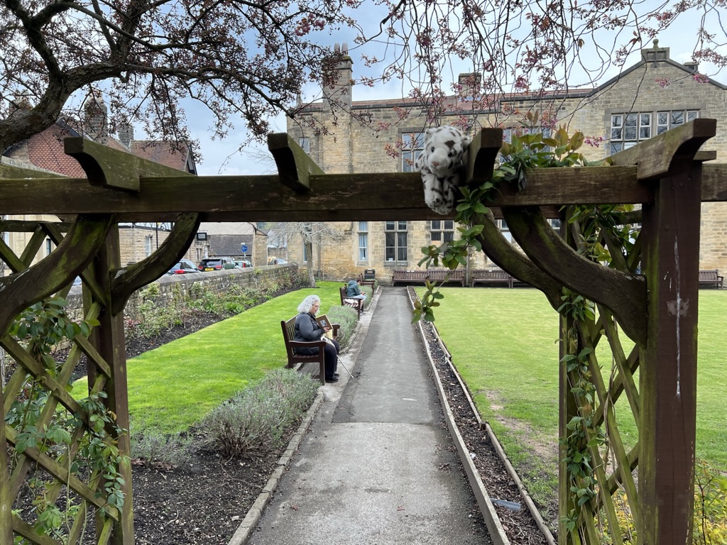 Robin adds class and elegance to whatever place she visits. Me? I’m a grunt. My presence lowers property values.Bakewell was beautiful.Robin is relaxing in a well-manicured English garden. Ranger is stalking his prey…