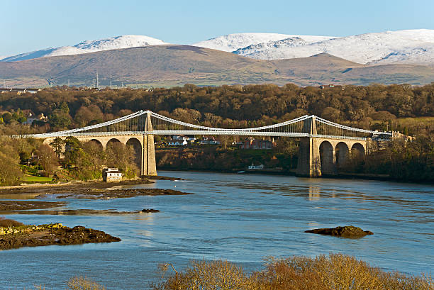 Menai Suspension Bridge, with the Snowden Mountains in the background.