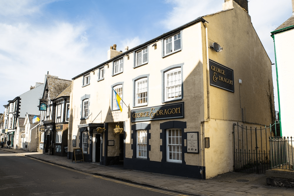 The George and Dragon. Note the upper slate board. This comes into play later.