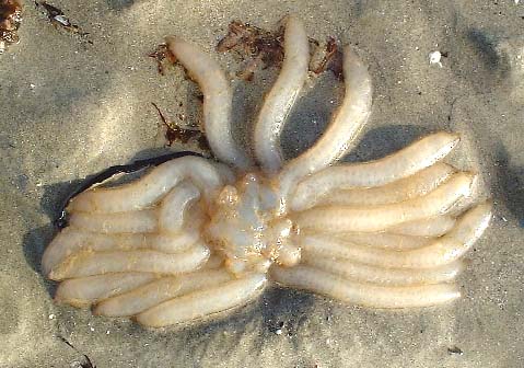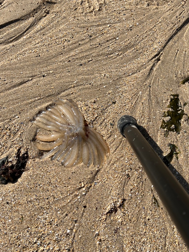 The end of my cane gives you an idea of scale. It was a clear, jelly-like creature that reminded my of the face hugger from Alien. After an extensive search of the Interwebs, this may actually have been squid eggs.